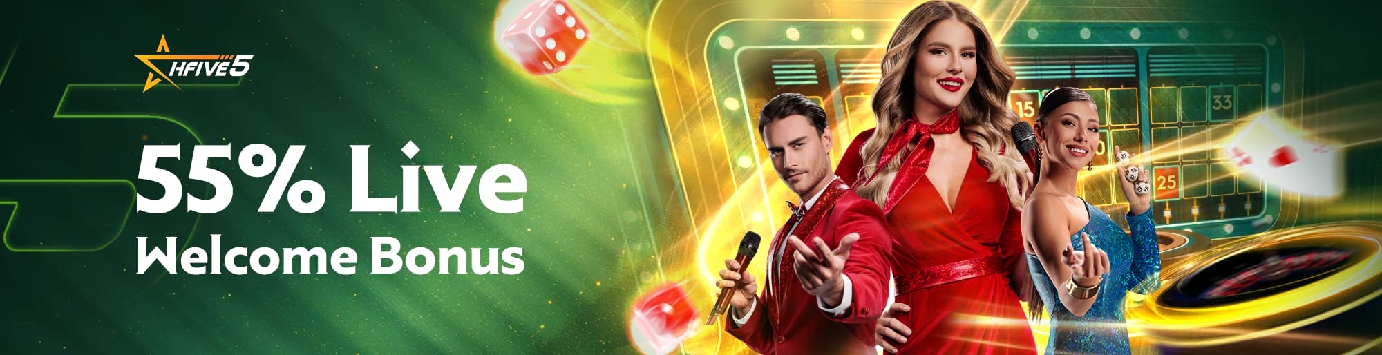 Play the best live casino online singapore games with our top-grossing platforms like Pragmatic Play, Evolution Gaming, and DreamGame, and never feel like you left the casino! Place your bets, meet new people and enjoy the live casino environment you so long miss, in the comfort of your own home! Register, claim your welcome bonus and play live casino games at Hfive5.